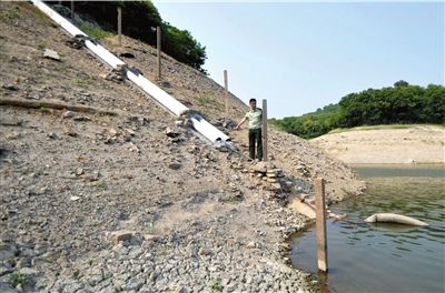 舟山蝦峙水庫(kù)干涸見(jiàn)底,自來(lái)水廠用于取水的管道已高于水面,無(wú)法取水