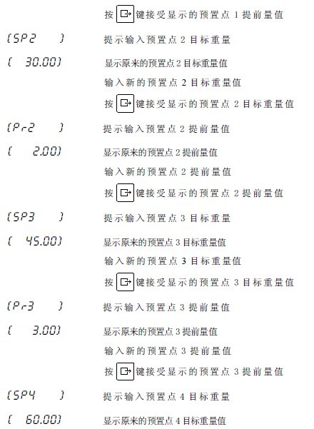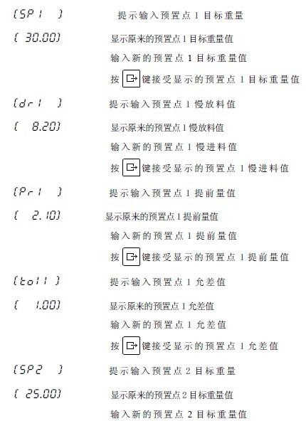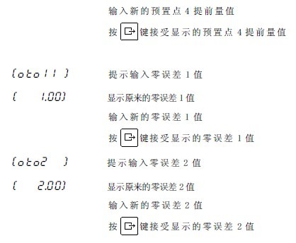 按 鍵,儀表進入預置點參數輸入方式。按照軟開關設置參數42、43 和44的不同設置,ST300共有8 種組合。兩種常見的設置方式如下: