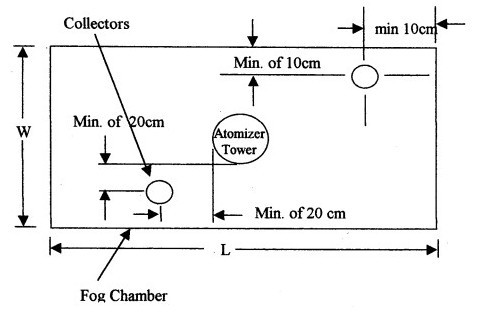 鹽霧試驗箱霧化和鹽霧量---在每個霧化塔暴露區域內,至少放入兩個干凈的鹽霧收集器,不會收集到測試樣品上的液滴或其他的液滴。調整收集器位置使之靠近樣品,一個離任一噴嘴的位置都近,另一個離所有噴嘴的位置遠。圖1是一種典型的布置。基于平均運行16小時基礎上(注釋9),水平收集區域方向上每80cm2 (12.4in.2),每小時將收集1.0—2.0ml的溶液。收集的氯化鈉溶液的濃度將達到5±1%質量比(備注9-11)。收集的溶液的PH值將為6.5—7.2,按照8.2所述方法測量PH值(備注3)。